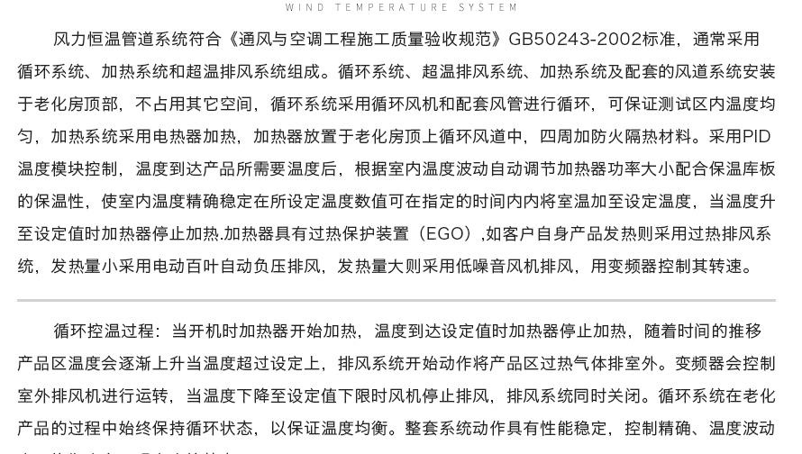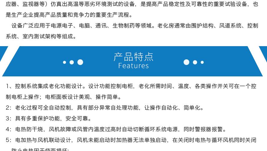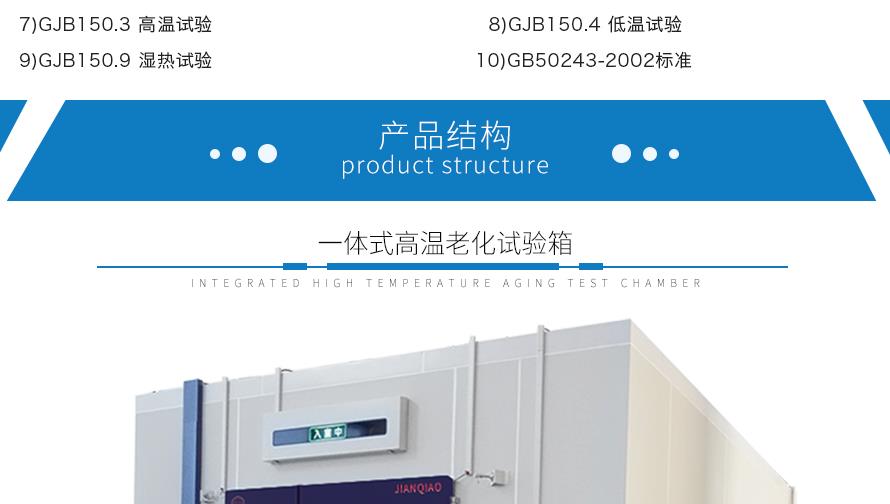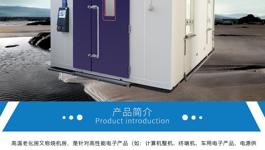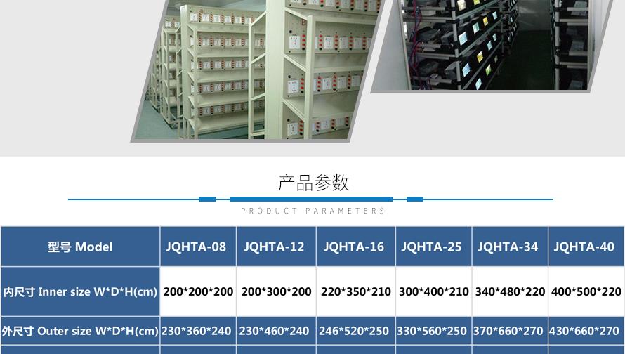 產品型號:JQTHA-12 品牌:劍 喬 用途:高溫老化房又稱燒機房,是針對高性能電子產品(如:計算機整機、終端機、車用電子產品、電源供應器、監視器等)仿真出高溫等惡劣環境測試的設備
